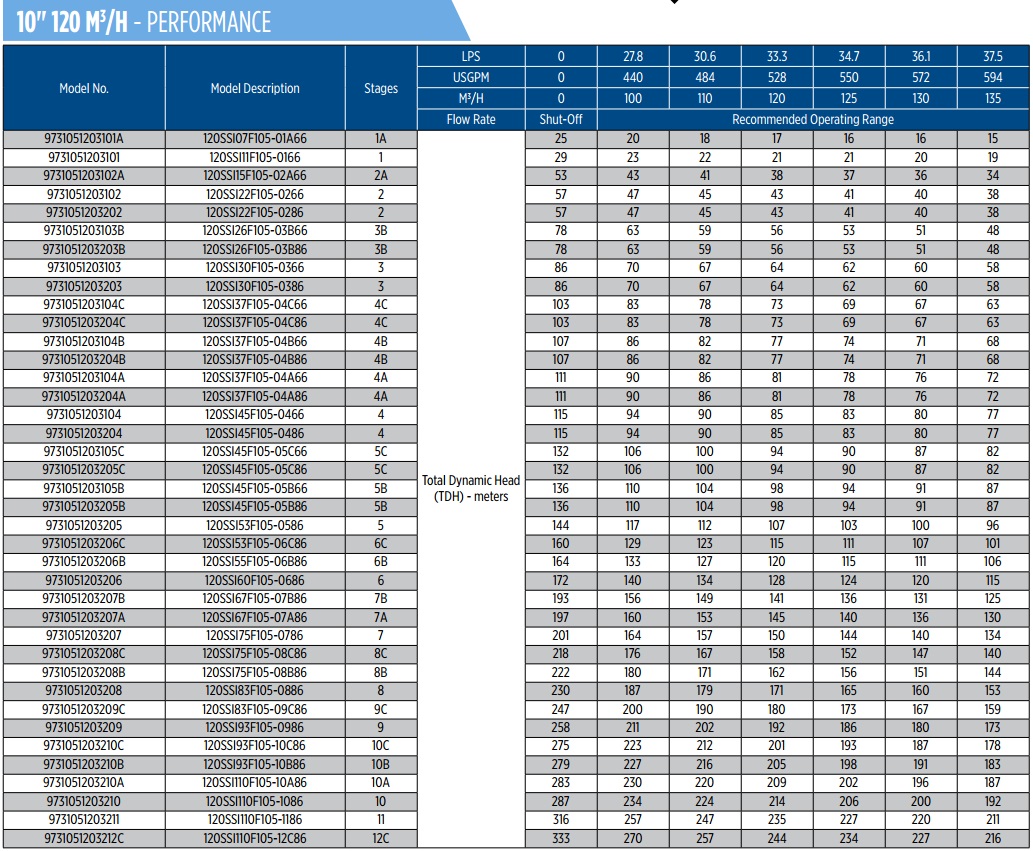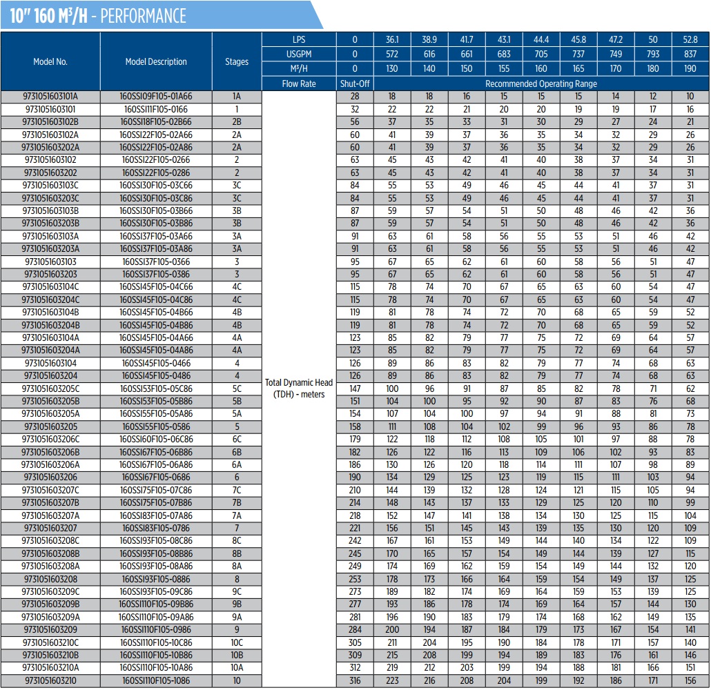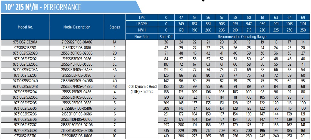 Các model bơm Franklin 10 inch loại lưu lượng 108m3/hCác model bơm Franklin 10 inch loại lưu lượng 120m3/hCác model bơm Franklin 10 inch loại lưu lượng 160m3/hCác model bơm Franklin 10 inch loại lưu lượng 215m3/h