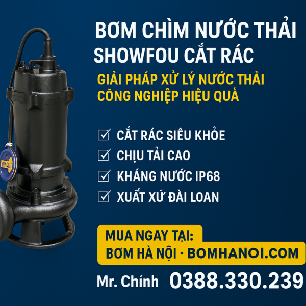 ???? Bơm chìm nước thải ShowFou cắt rác 5.5kW – Giải pháp xử lý nước thải công nghiệp hiệu quả